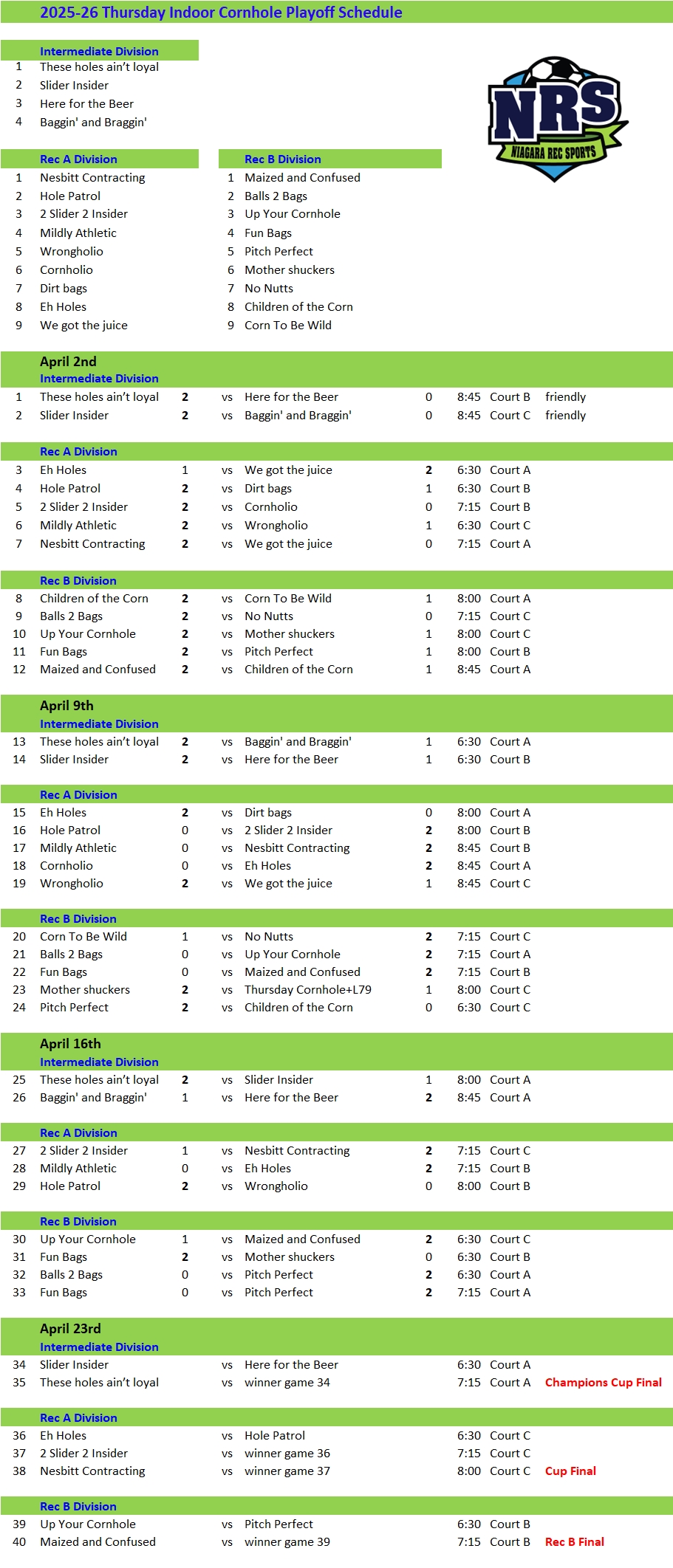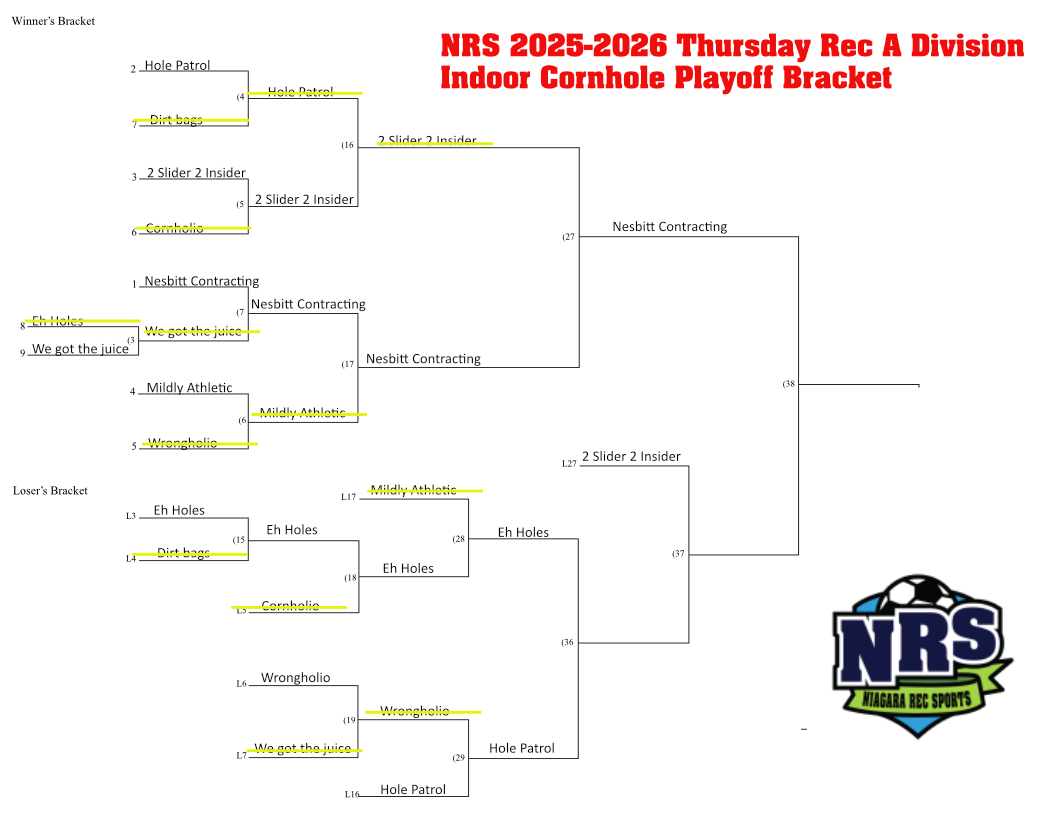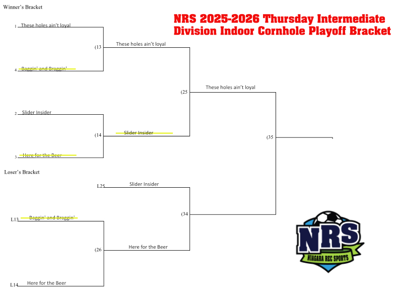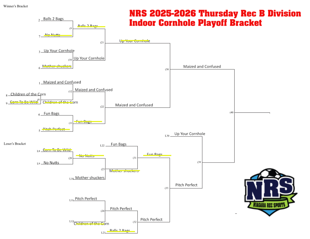 Cornhole Playoff Schedule Indoor Thursday Evening