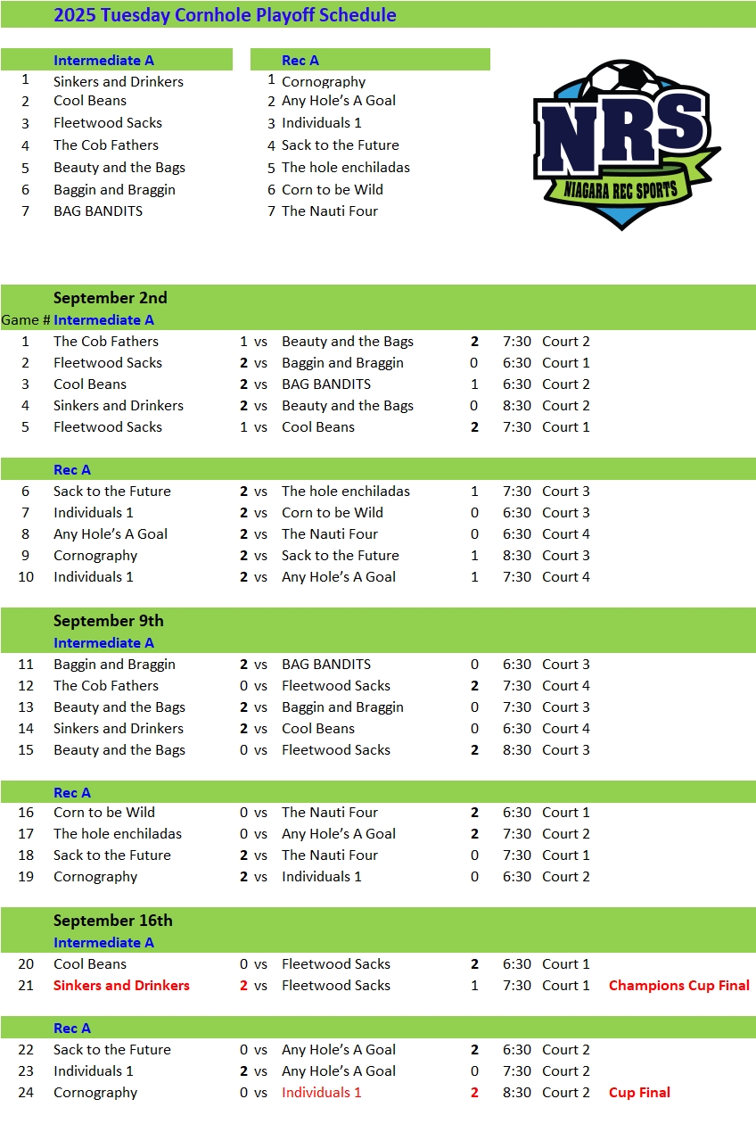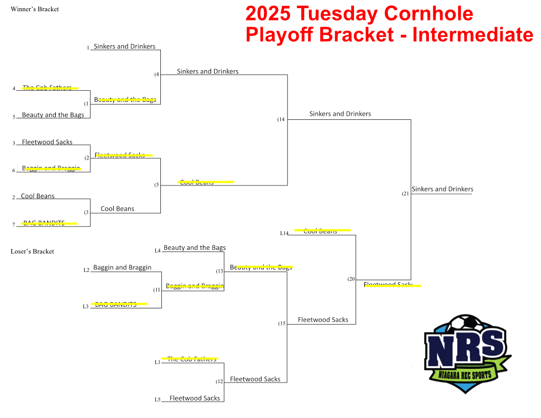 Cornhole Playoff Schedule Summer Outdoor Tuesday Evening