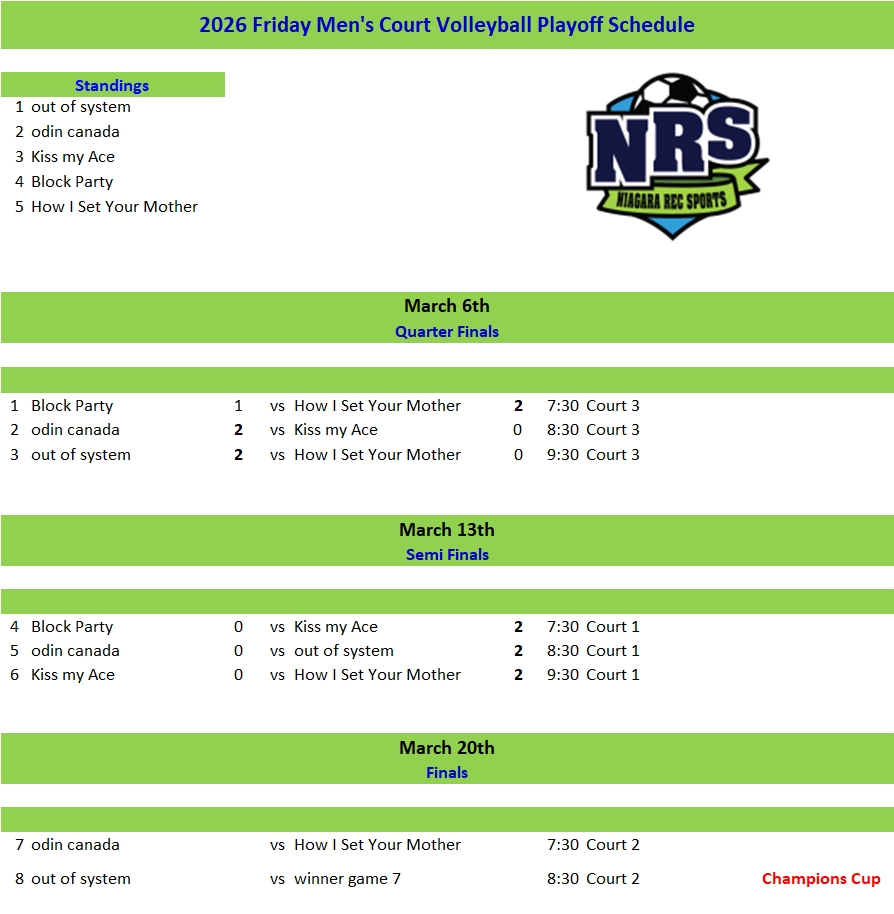 Friday Evening Mens Court Volleyball Playoff Schedule