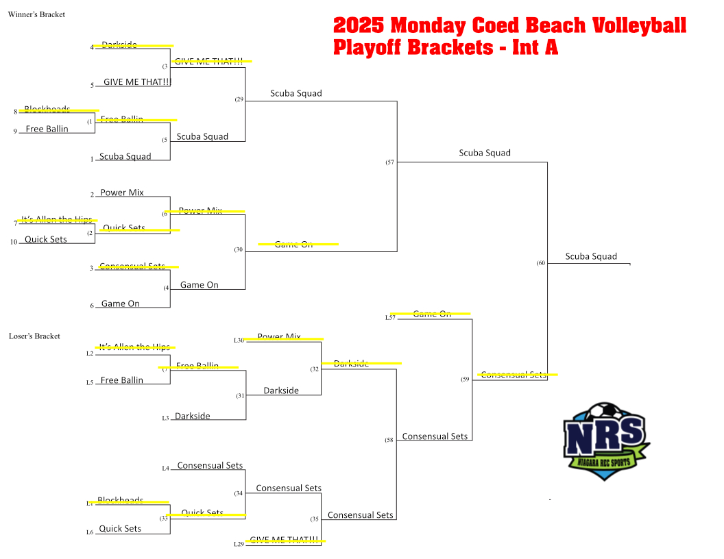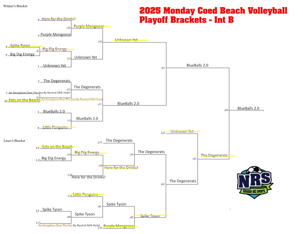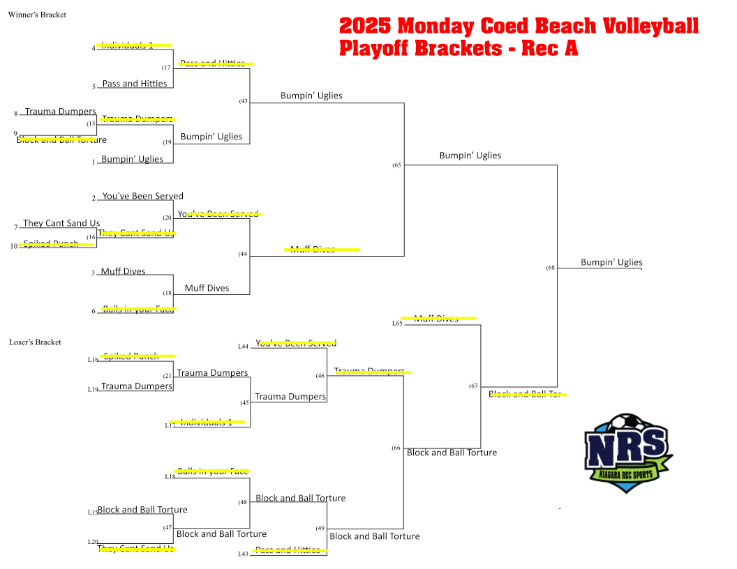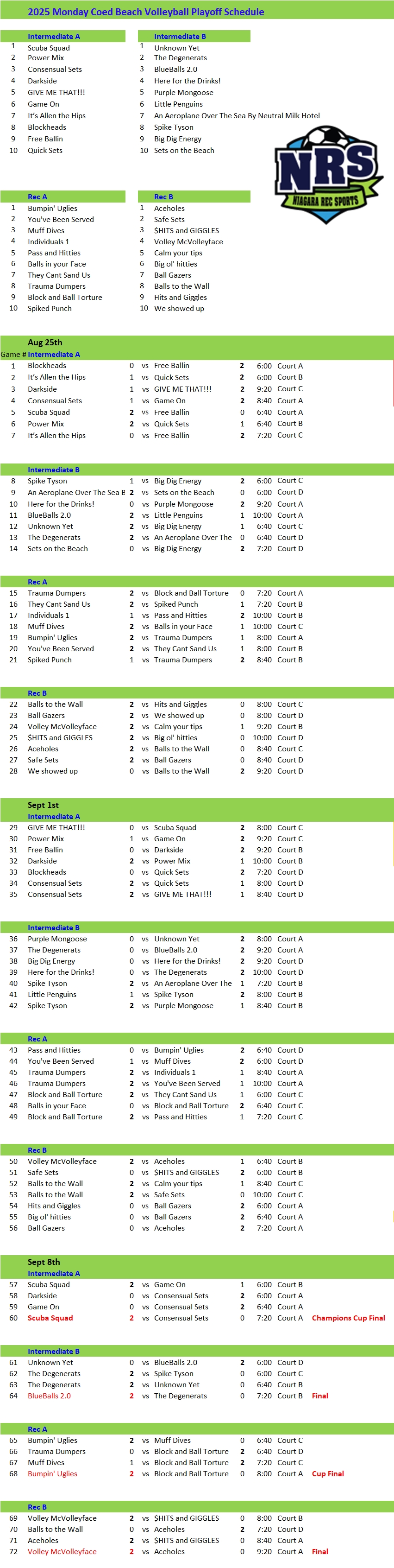 2025 Monday Evening Beach Volleyball Playoff Schedule
