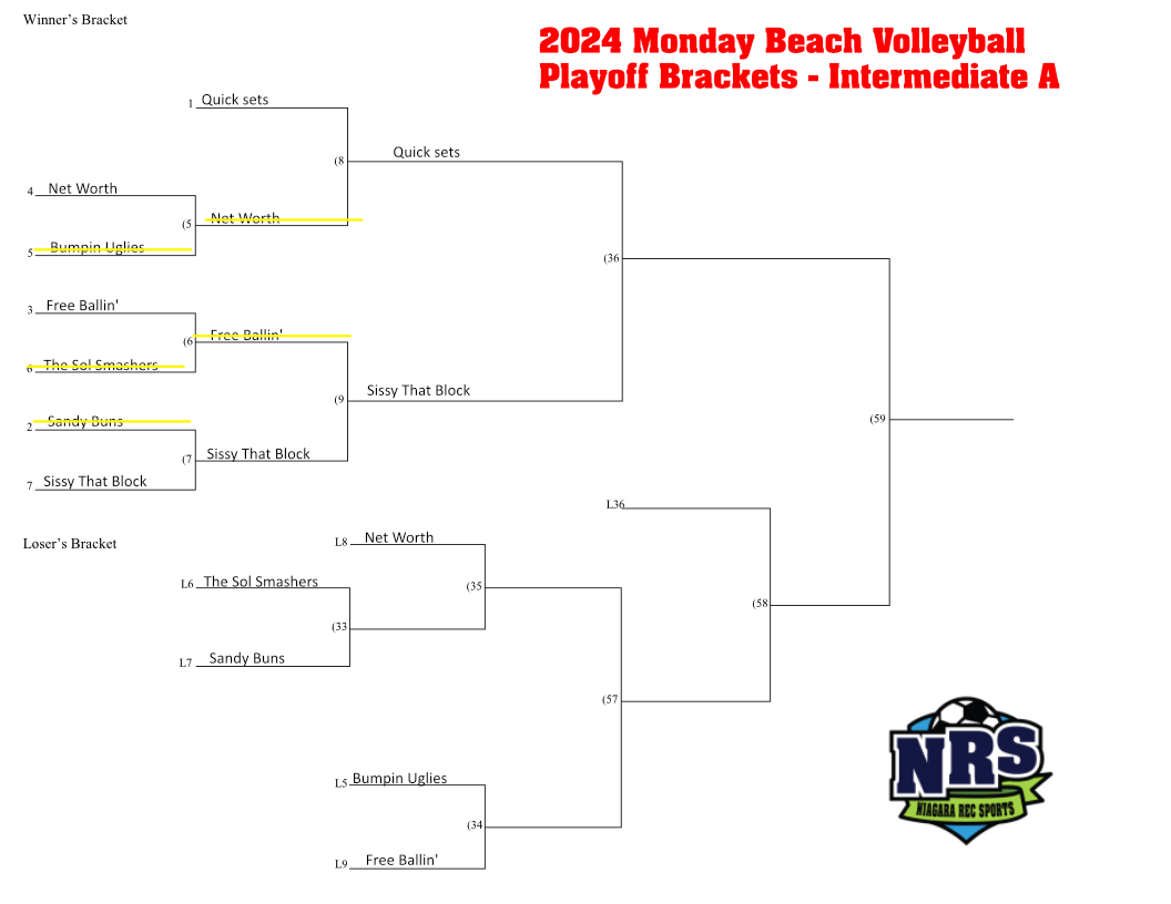 2024 NRS Monday Playoff Bracket – Int A Published August 27, 2024 at 1056 × 816 in Monday Evening Beach Volleyball Playoff Schedule