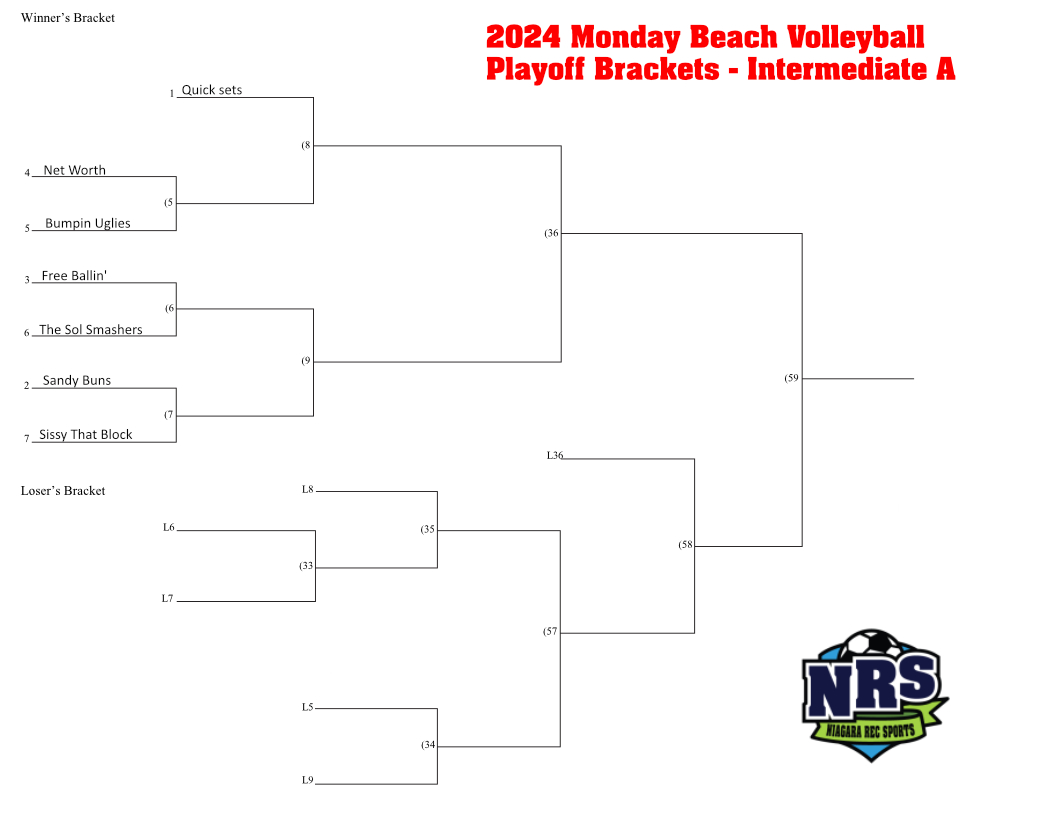 2024 NRS Monday Playoff Bracket – Int A Published August 23, 2024 at 1056 × 816 in Monday Evening Beach Volleyball Playoff Schedule