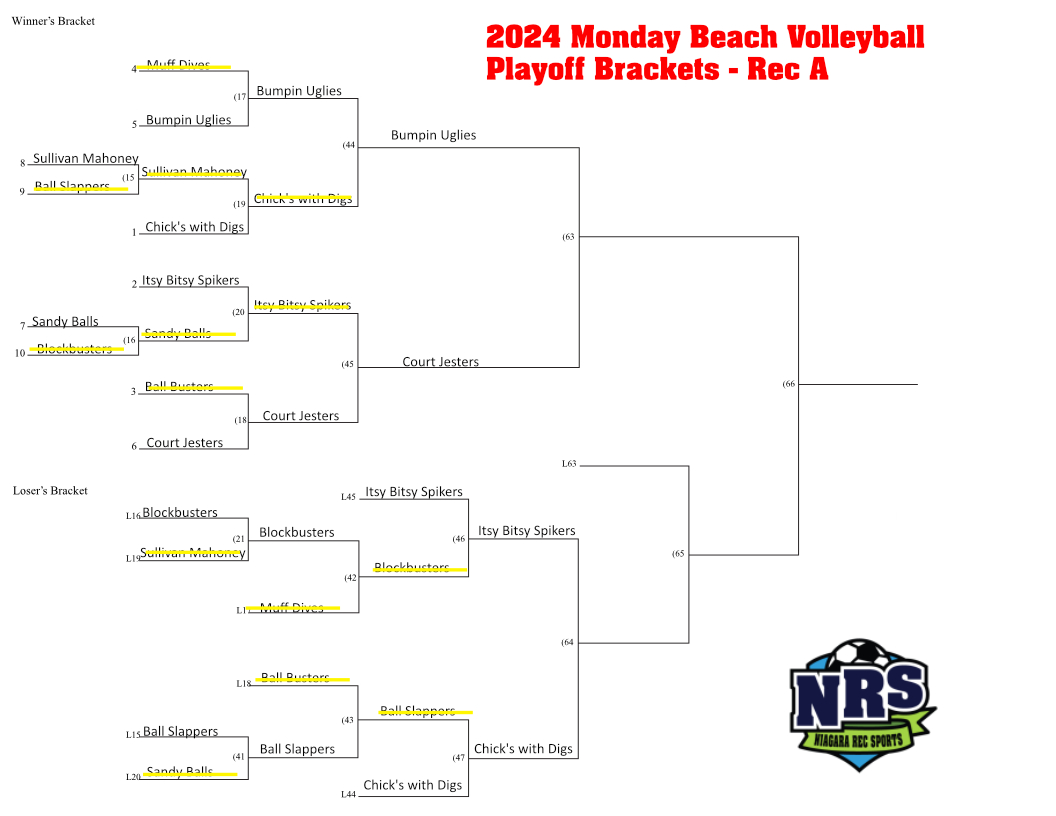 2024 NRS Monday Playoff Bracket – Rec A Published September 18, 2024 at 1056 × 816 in Monday Evening Beach Volleyball Playoff Schedule