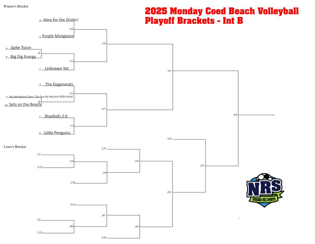 2025 Monday VB Playoff Bracket Int B – 10 teams Published August 20, 2025 at 1056 × 816 in Monday Evening Beach Volleyball Playoff Schedule