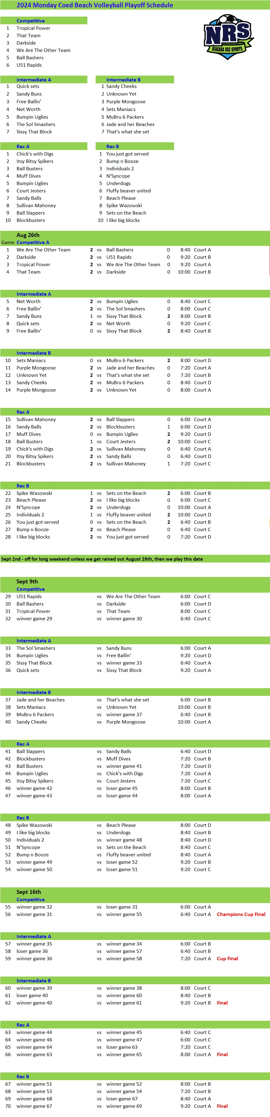 Monday Playoff Schedule 2 Published August 27, 2024 at 881 × 3634 in Monday Evening Beach Volleyball Playoff Schedule