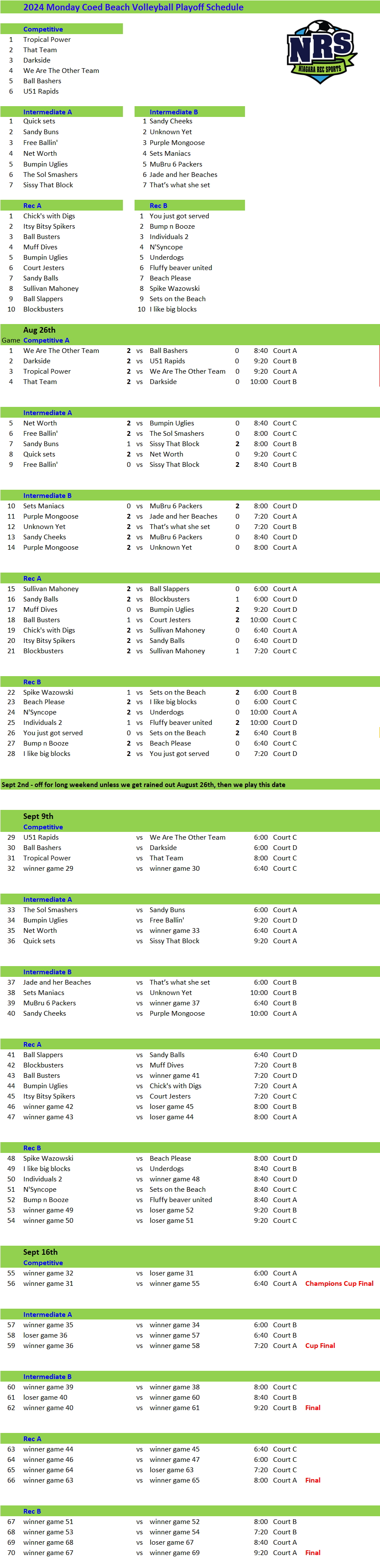 Monday Playoff Schedule week 2 Published September 9, 2024 at 881 × 3634 in Monday Evening Beach Volleyball Playoff Schedule