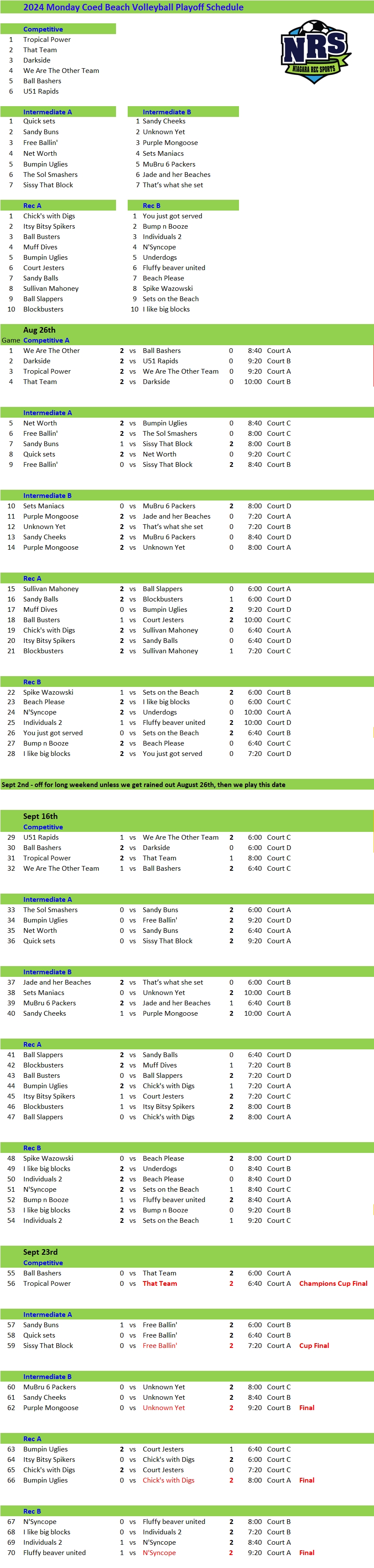 Monday Playoff Schedule week Final Published August 20, 2025 at 867 × 3634 in Monday Evening Beach Volleyball Playoff Schedule