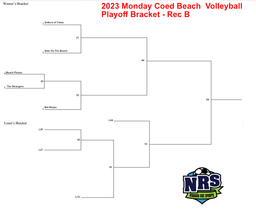 NRS 2023 Monday 5 team Coed Beach Volleyball Playoff Bracket – Published August 23, 2023 at 846 × 698 in Monday Evening Beach Volleyball Playoff Schedule