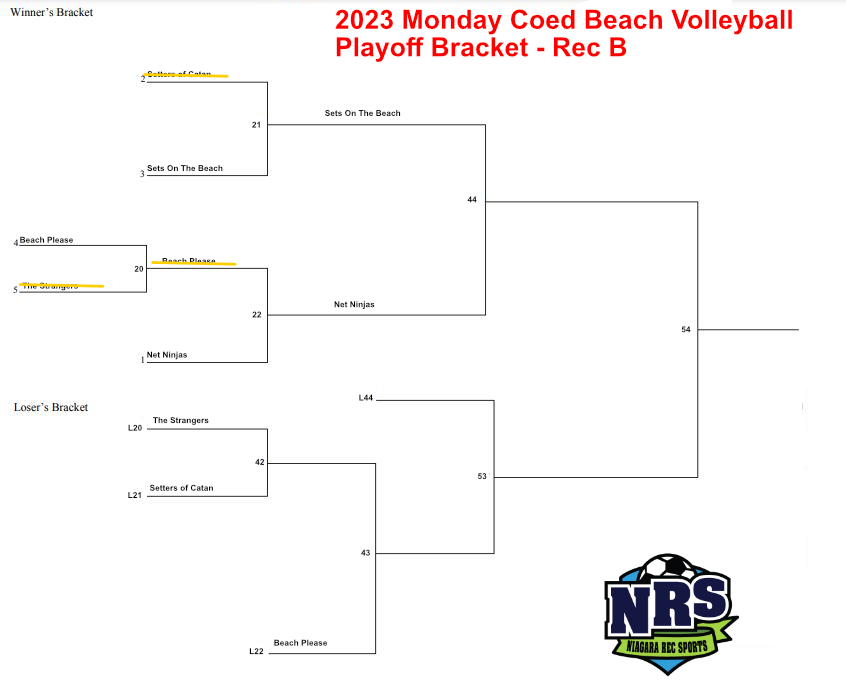 NRS 2023 Monday 5 team Coed Beach Volleyball Playoff Bracket –