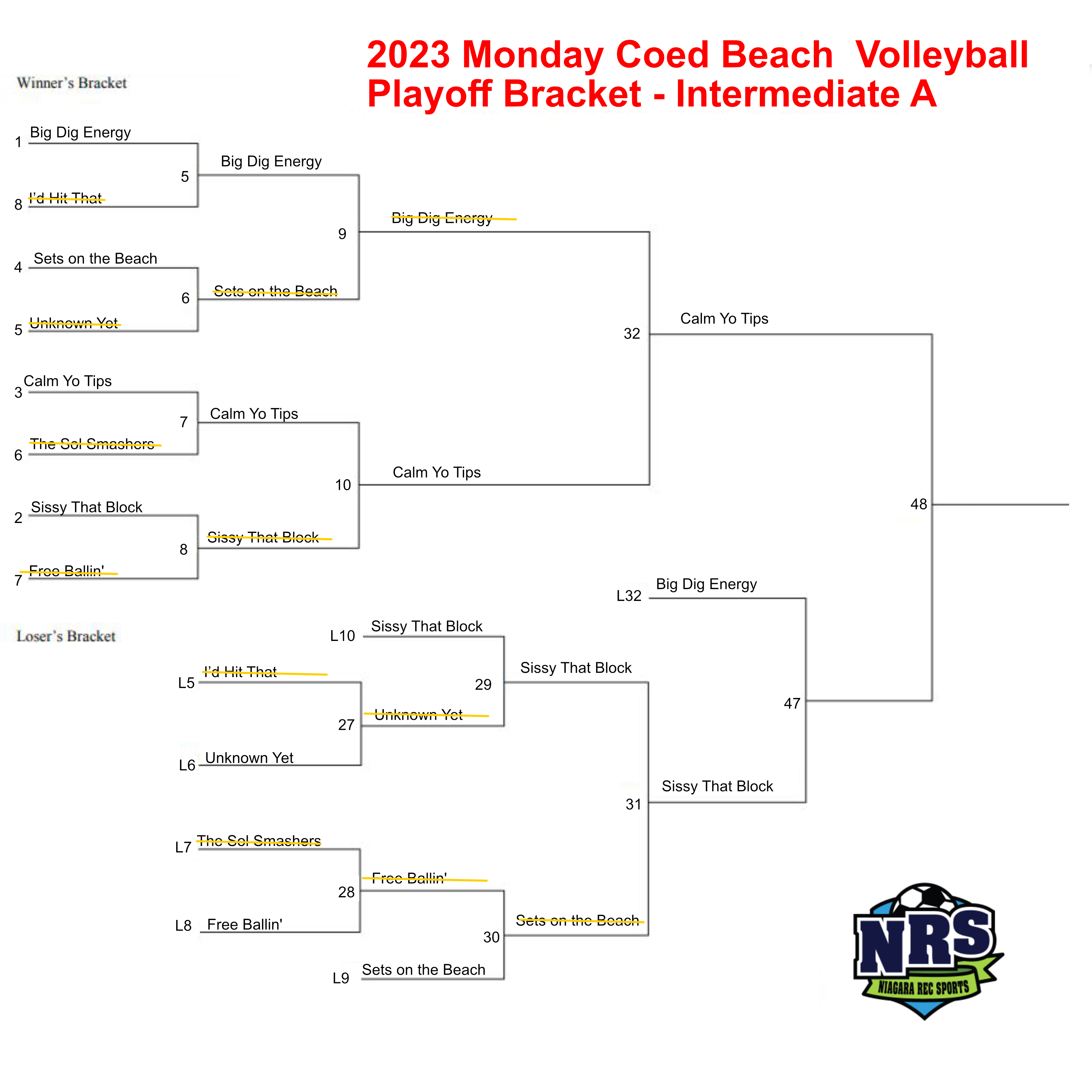 NRS Tuesday Coed Beach Volleyball Playoff Bracket – Intermediate