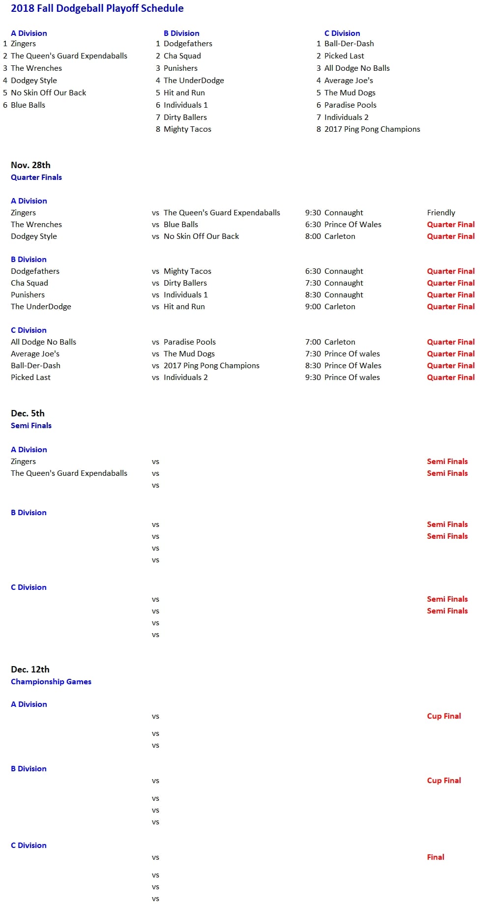 NRS 2018 Fall Dodgeball Playoff week 1a Published November 26, 2018 at 1003 × 1839 in Outdoor Soccer Playoff Schedule Sunday