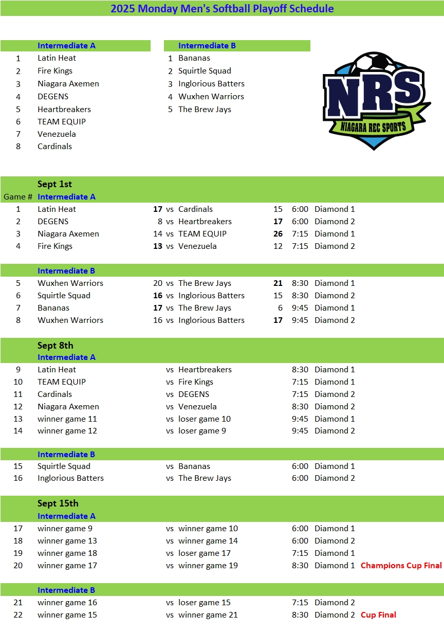 2025 Monday Playoff Schedule wk2 Published September 3, 2025 at 864 × 1231 in Playoff Schedule Monday Evening Men’s Softball Regency