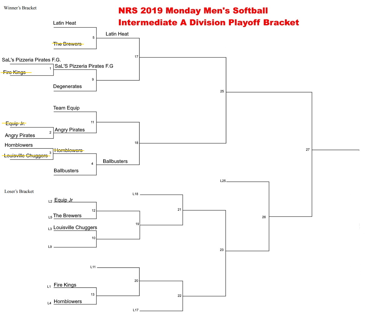 NRS 2019 Monday Mens Int A Softball Playoff Bracket A Published September 11, 2019 at 1170 × 1006 in Playoff Schedule Monday Evening Men’s Softball Regency