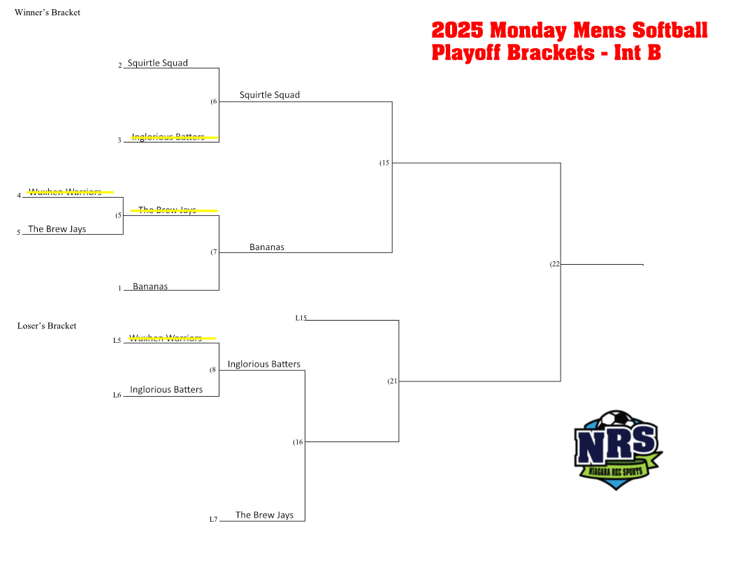 NRS 2025 Mon Mens Softball 5 Teams Payoff Bracket – Intermediate Published September 3, 2025 at 1056 × 816 in Playoff Schedule Monday Evening Men’s Softball Regency