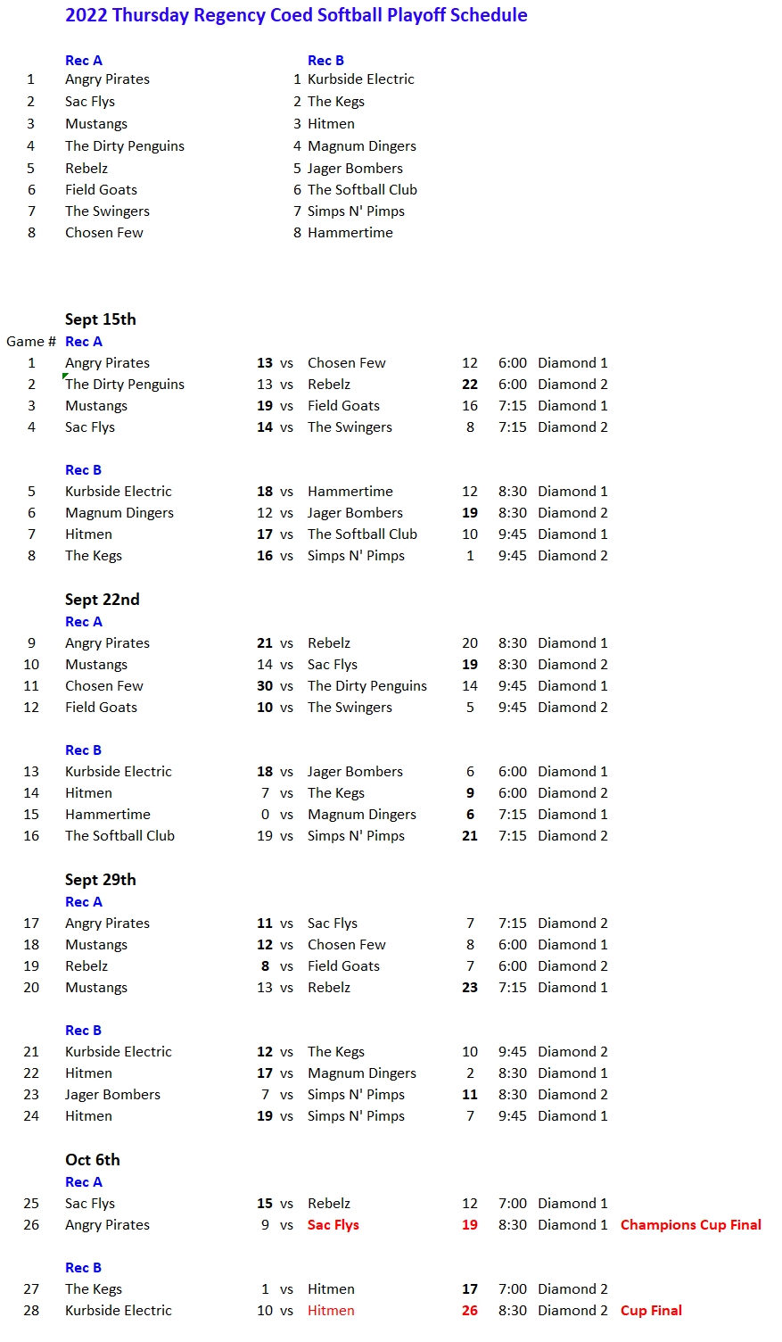 Published October 11, 2022 at 877 × 1504 in Playoff Schedule Thursday Evening Men’s Softball Regency