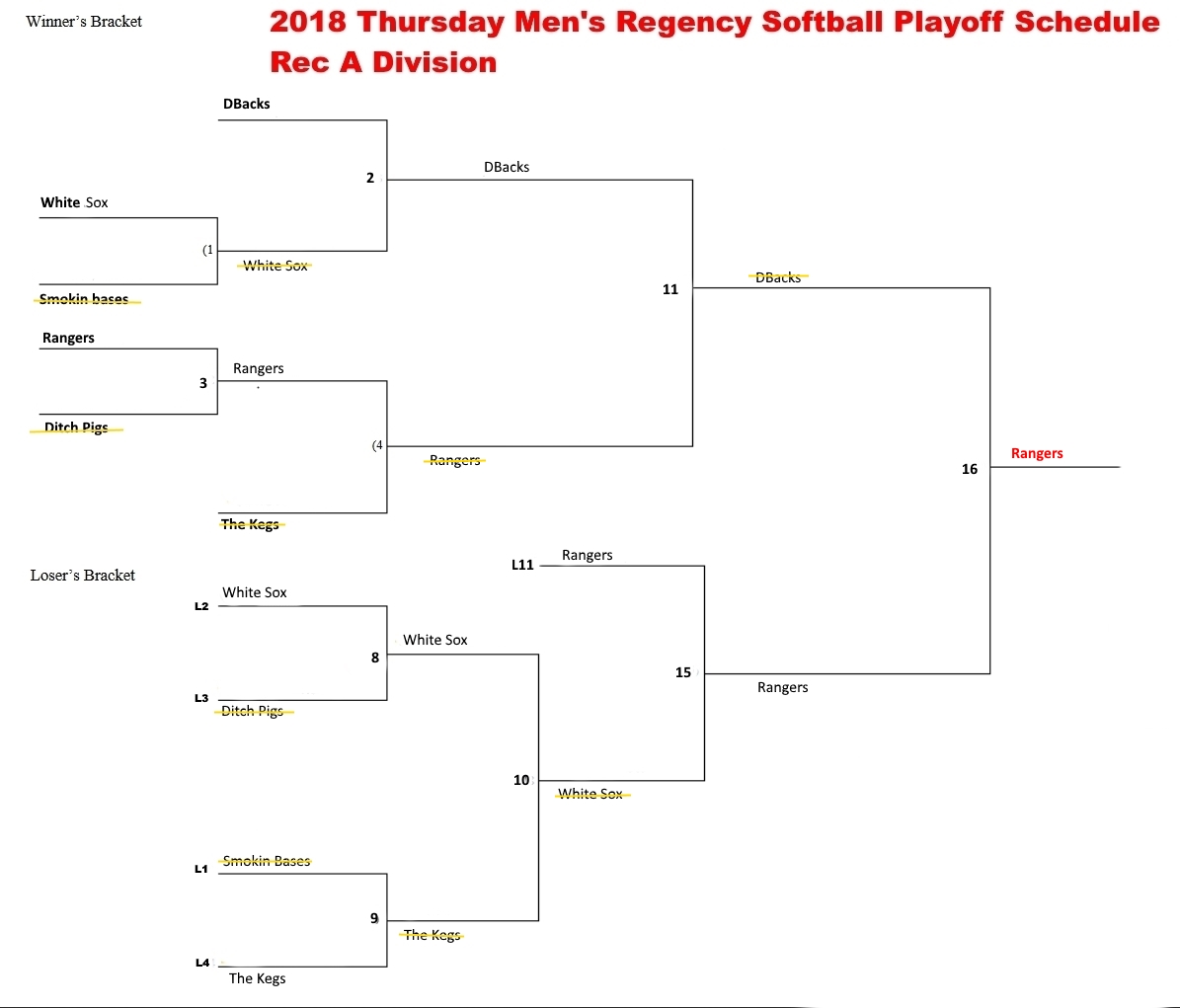 NRS Thrusday Mens Rec A Playoff Bracket 6 team Double Elim Week Final Published October 24, 2018 at 1195 × 1021 in Playoff Schedule Thursday Evening Men’s Softball Regency