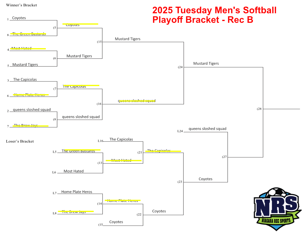 Tuesday Men’s Softball Playoff Bracket – Rec B
