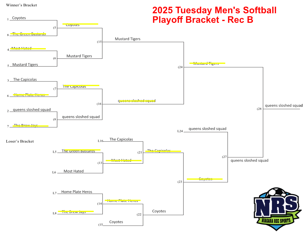 2024 thursday Mens 8 team Softball Playoff Bracket – Rec B
