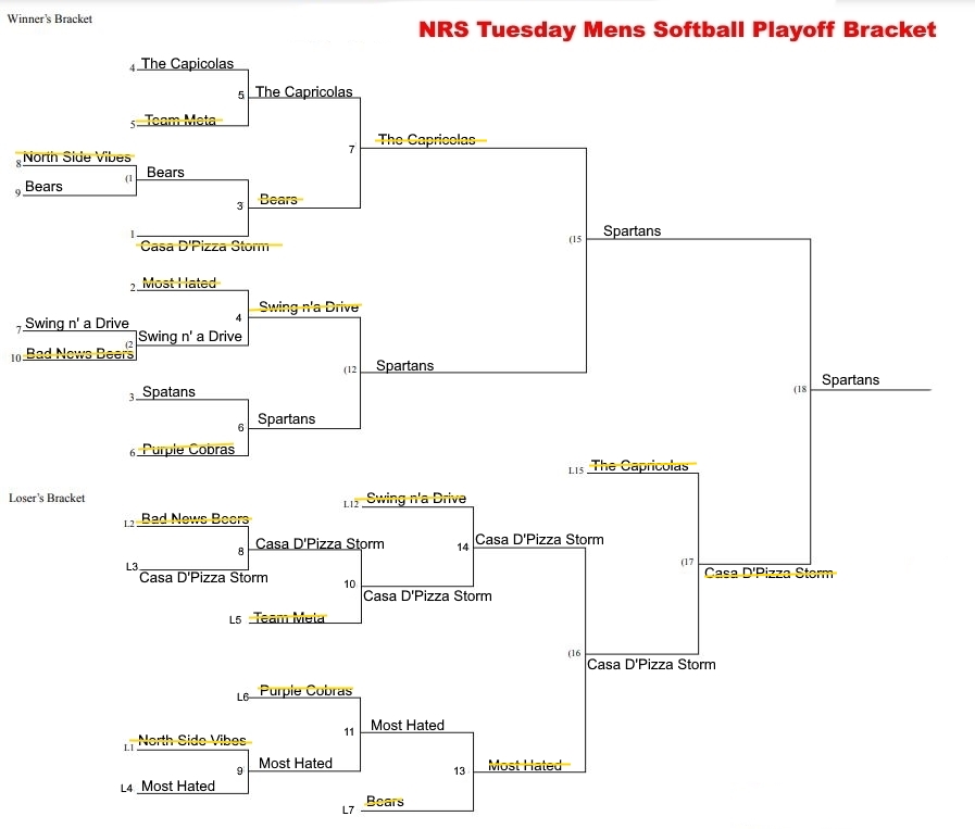 NRS 2022 Tuesday Mens Softball Playoff Brackets Final Published October 11, 2022 at 897 × 763 in Playoff Schedule Tuesday Evening Men’s Softball Regency