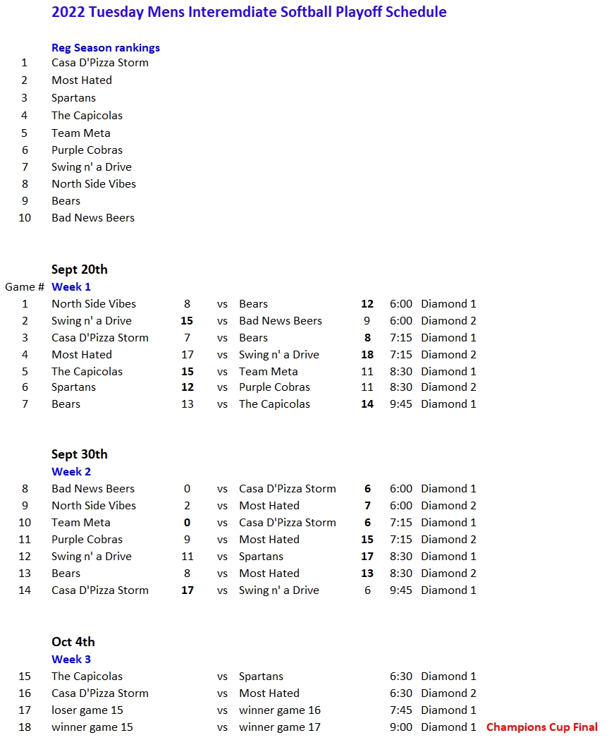 NRS 2022 Tuesday Mens Softball Playoff Schedule Week 3 Published October 1, 2022 at 871 × 1066 in Playoff Schedule Tuesday Evening Men’s Softball Regency