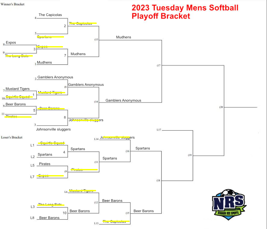 NRS 2023 Tuesday Mens Softball Playoff Bracket A