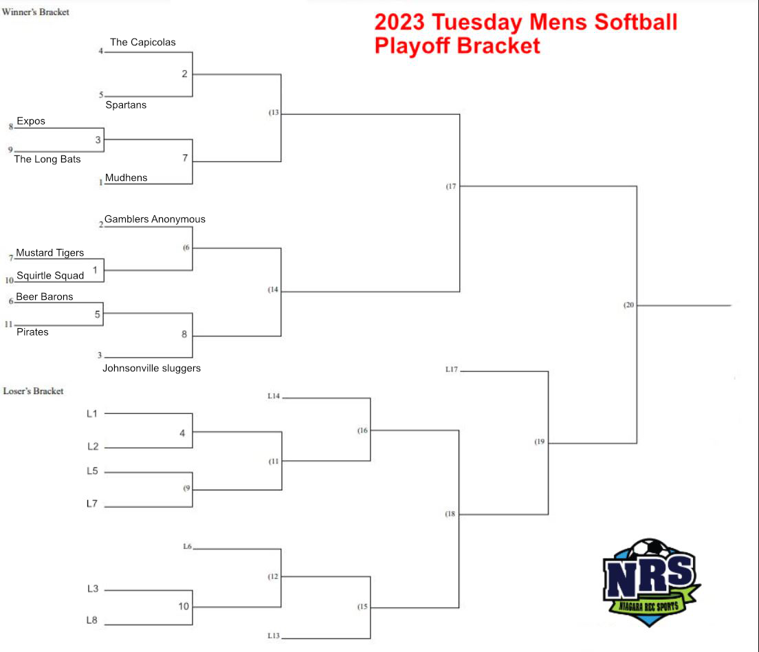 NRS 2023 Tuesday Mens Softball Playoff Bracket A Published September 2, 2023 at 1104 × 948 in Playoff Schedule Tuesday Evening Men’s Softball Regency