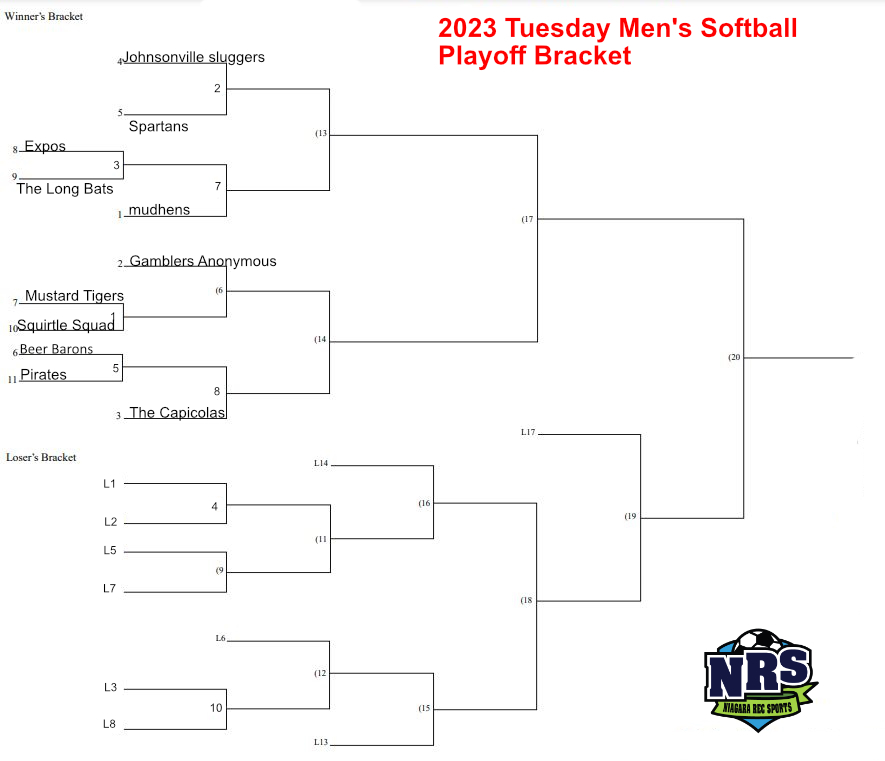 NRS 2023 Tuesday Mens Softball Playoff Bracket-week 1