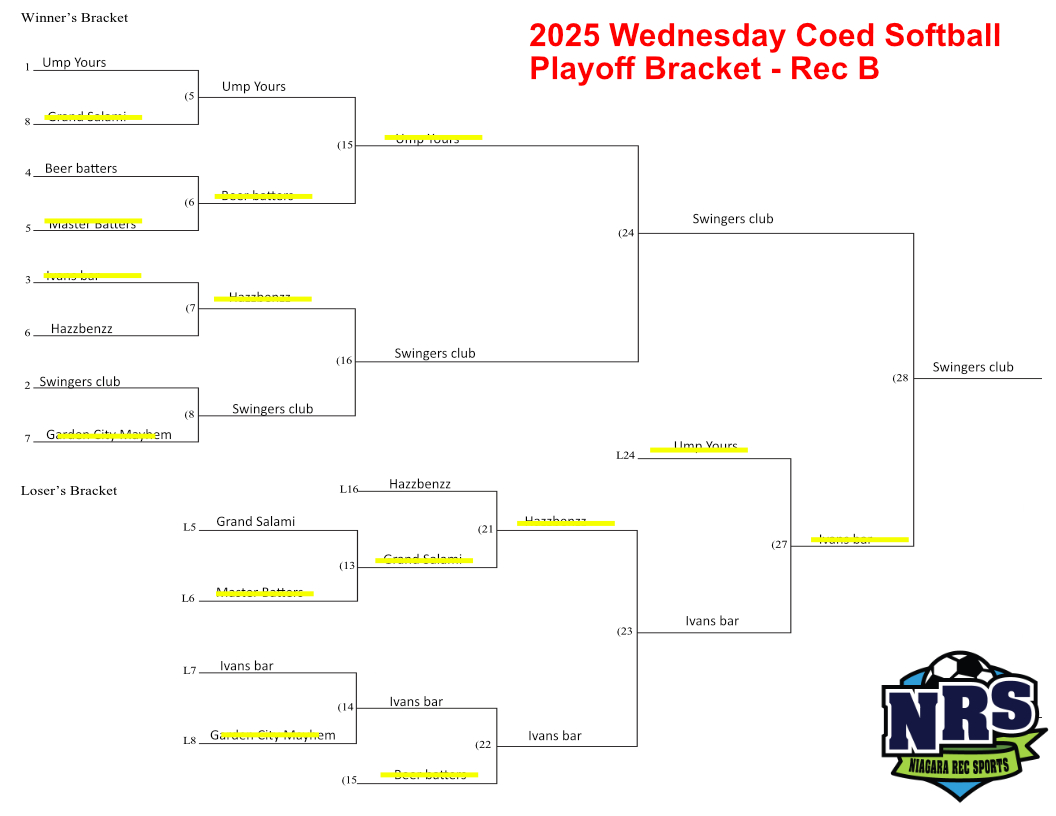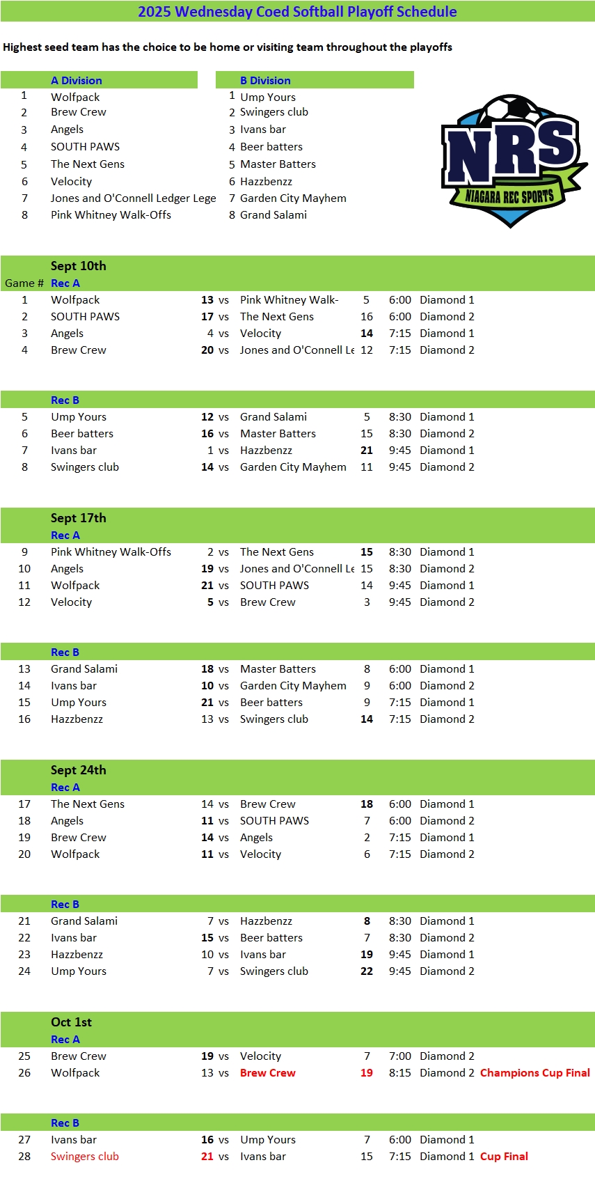 Wednesday Evening Coed Softball Playoff Schedule – Regency