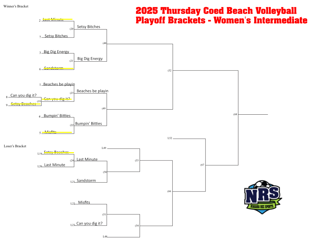 2025 Thursday VB Playoff Bracket Womens Intermediate – 9 teams Published August 25, 2025 at 1056 × 816 in Thursday Evening Beach Volleyball Playoff Schedule