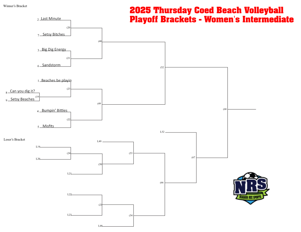 2025 Thursday VB Playoff Bracket Womens Intermediate – 9 teams Published August 17, 2025 at 1056 × 816 in Thursday Evening Beach Volleyball Playoff Schedule