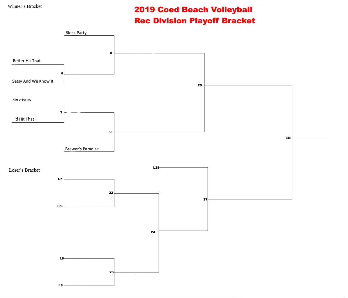 NRS Coed Rec 6 Playoff Bracket Double Elim Week 1a Published August 17, 2019 at 1195 × 1021 in Thursday Evening Beach Volleyball Playoff Schedule