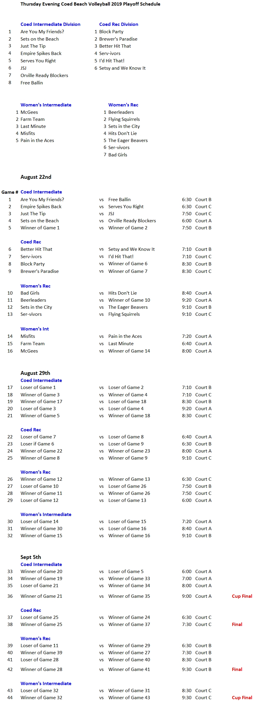 NRS 2019 Thurs Beach V ball Playoff week 1b Published August 17, 2019 at 865 × 2408 in Thursday Evening Beach Volleyball Playoff Schedule
