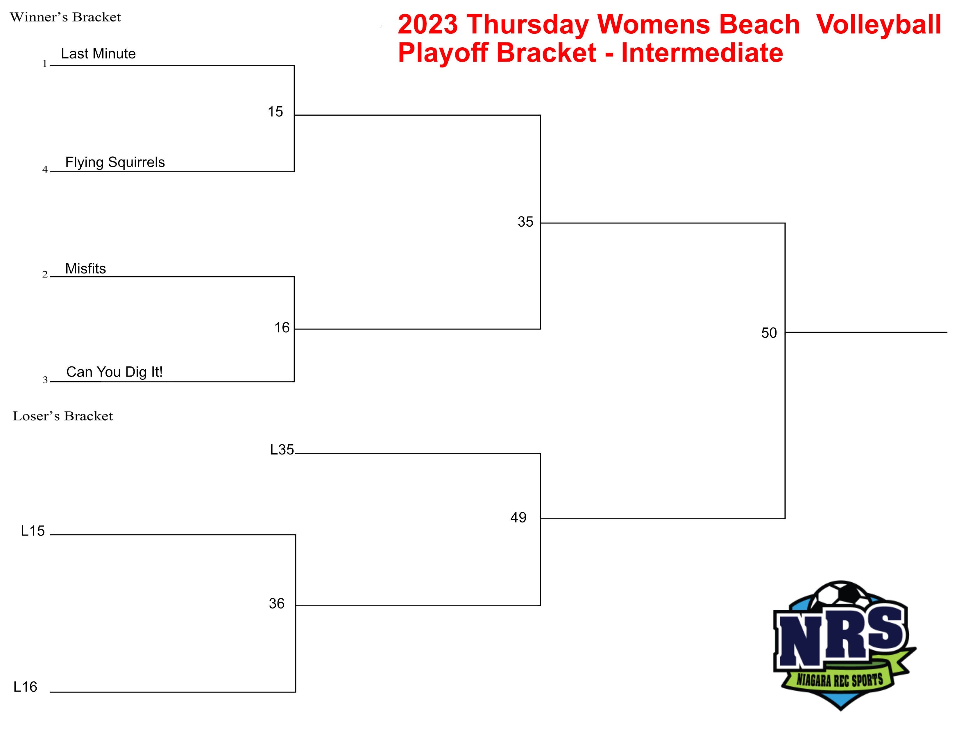 NRS 2023 Thursday 6 team Womens Beach Volleyball Playoff Bracket Published August 29, 2023 at 3300 × 2550 in Thursday Evening Beach Volleyball Playoff Schedule