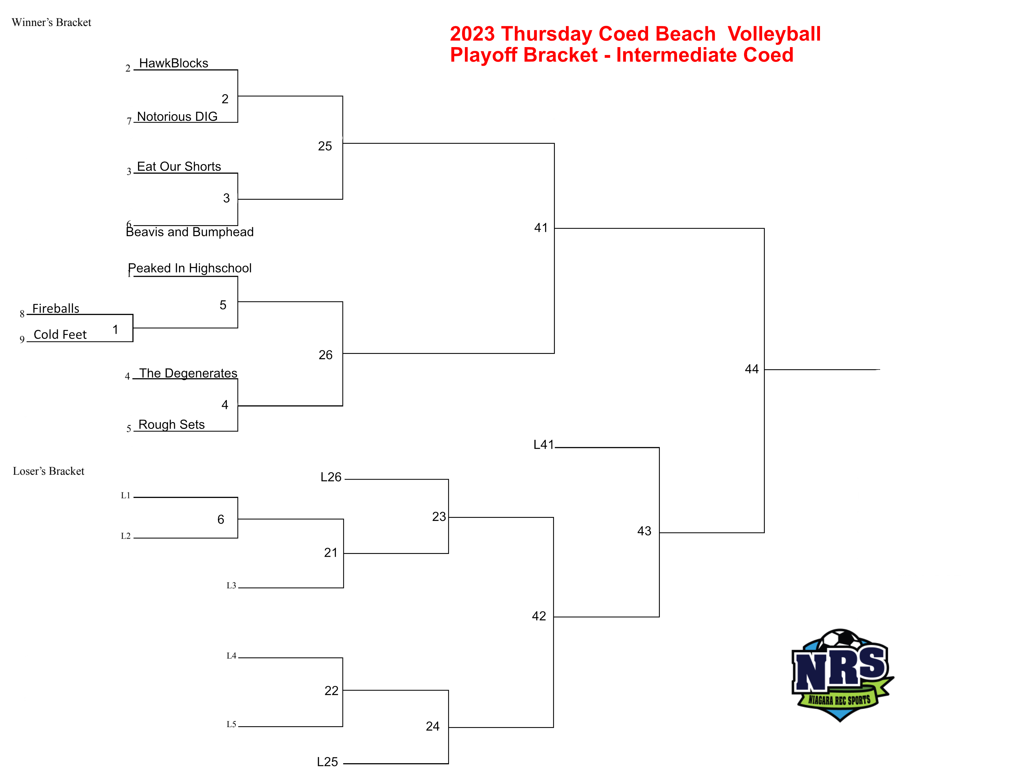 NRS 2023 Thursday 9 team Coed Beach Volleyball Playoff Bracket –