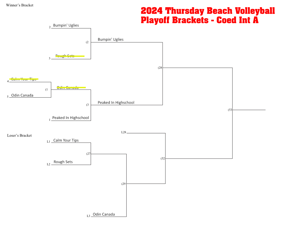 NRS 2024 Thursday Coed Playoff Bracket – Int A Published August 24, 2024 at 1056 × 816 in Thursday Evening Beach Volleyball Playoff Schedule