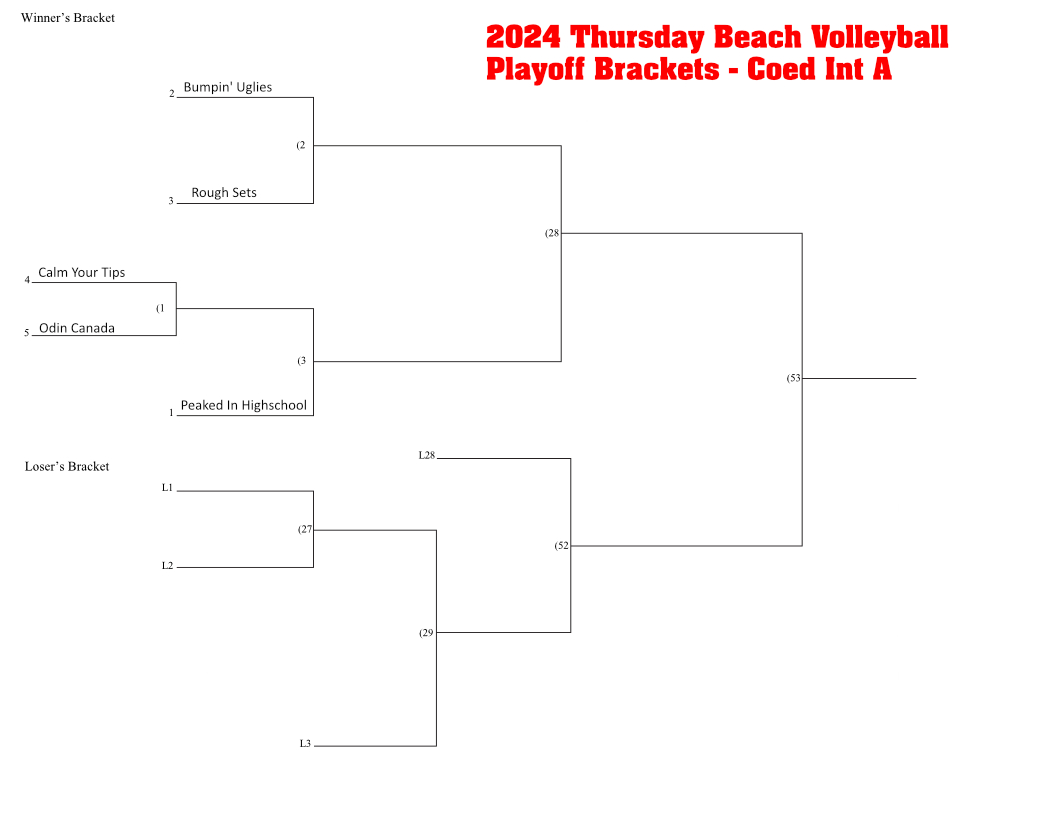 NRS 2024 Thursday Coed Playoff Bracket – Int A Published August 18, 2024 at 1056 × 816 in Thursday Evening Beach Volleyball Playoff Schedule