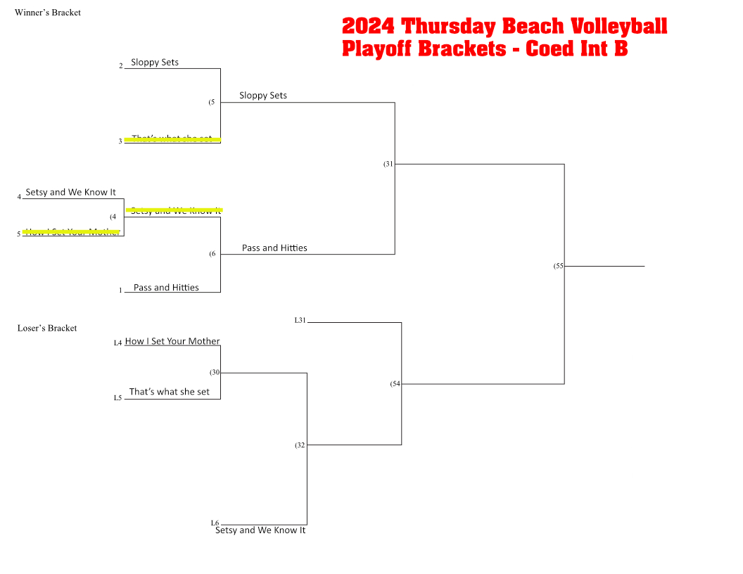 NRS 2024 Thursday Coed Playoff Bracket – Int B Published August 24, 2024 at 1056 × 816 in Thursday Evening Beach Volleyball Playoff Schedule