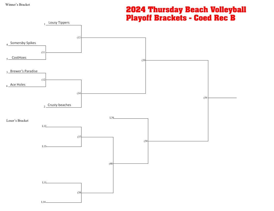 NRS 2024 Thursday Coed Playoff Bracket – Rec B Published August 18, 2024 at 1056 × 816 in Thursday Evening Beach Volleyball Playoff Schedule