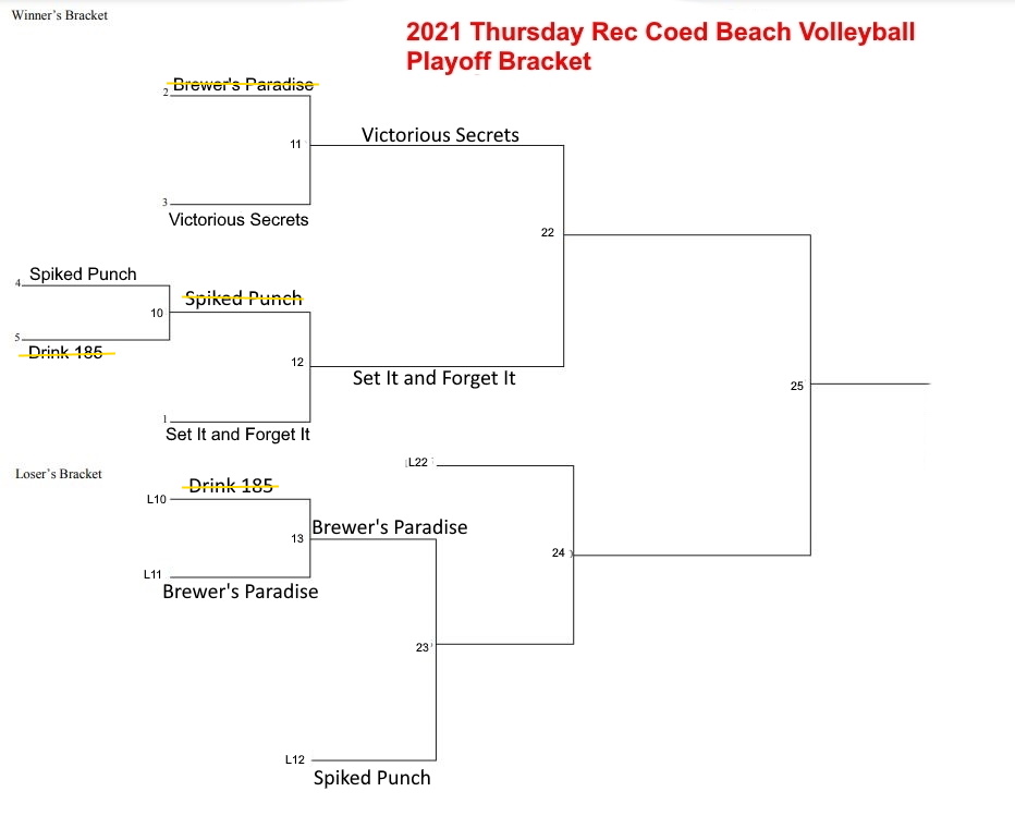 NRS 5 Team Coed Rec Playoff Bracket Week 2 Published September 10, 2021 at 932 × 749 in Thursday Evening Beach Volleyball Playoff Schedule