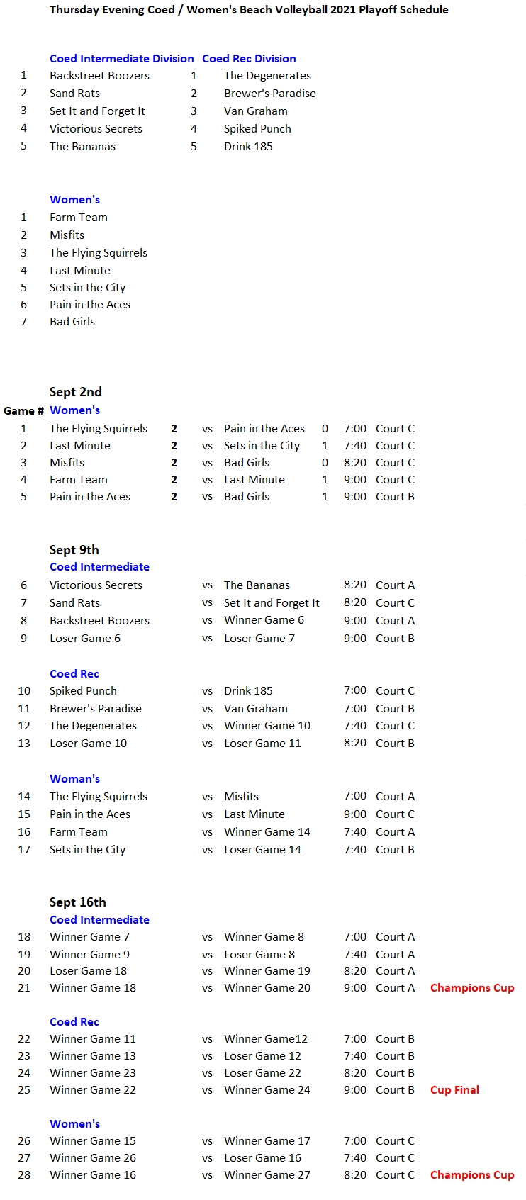 NRS Thursday Beach Volleyball Schedule week 1 Published September 5, 2021 at 742 × 1693 in Thursday Evening Beach Volleyball Playoff Schedule