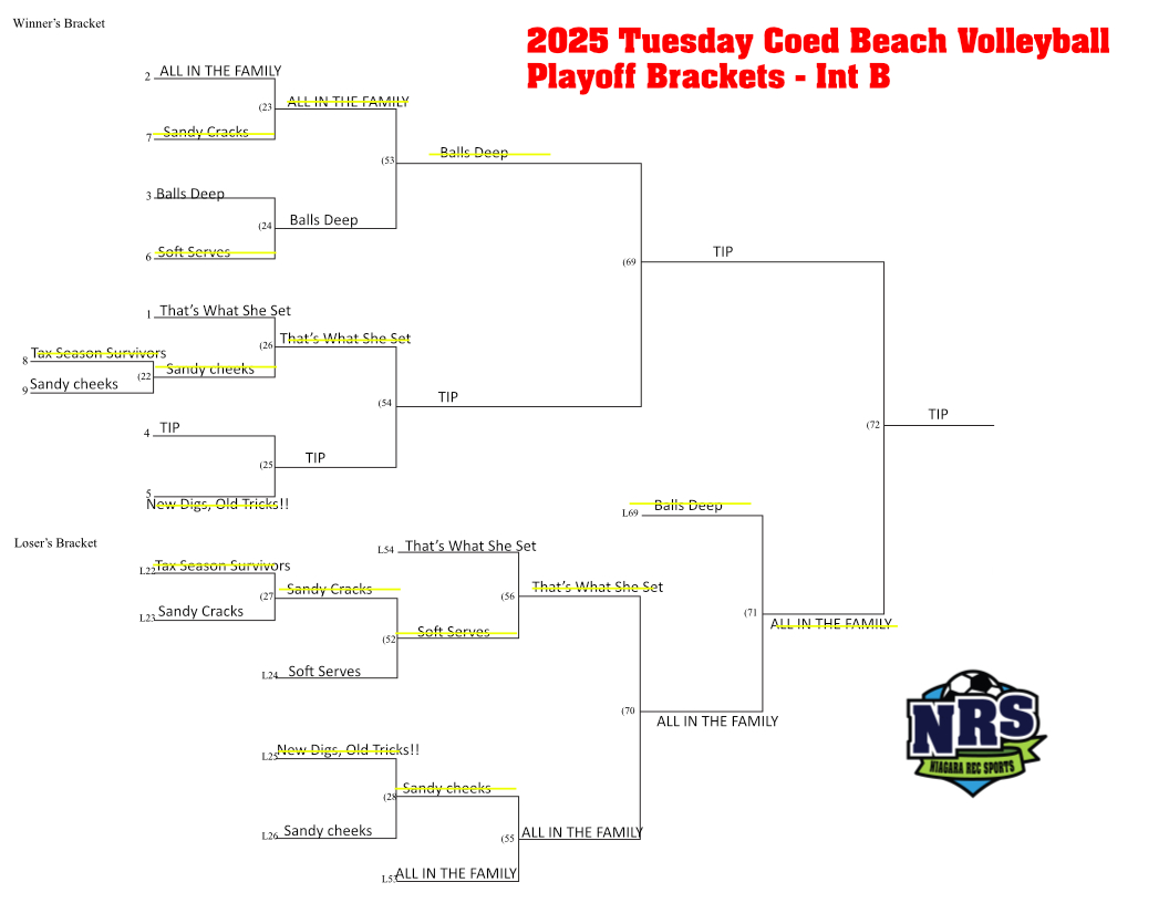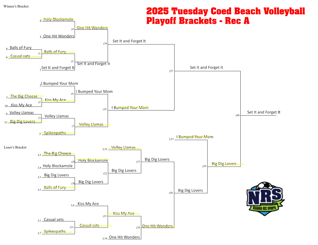 2025 Tuesday Evening Beach Volleyball Playoff Schedule