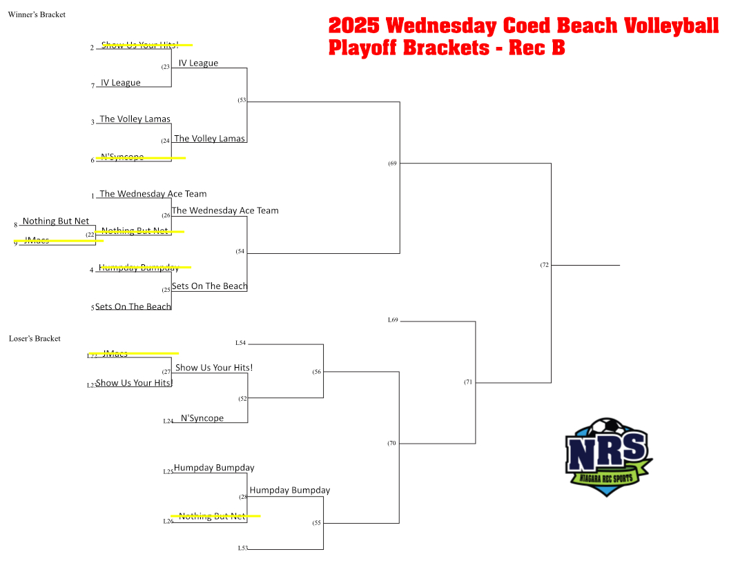 2025 Wednesday VB Playoff Bracket Rec B – 9 teams Published August 21, 2025 at 1056 × 816 in Wednesday Evening Beach Volleyball Playoff Schedule