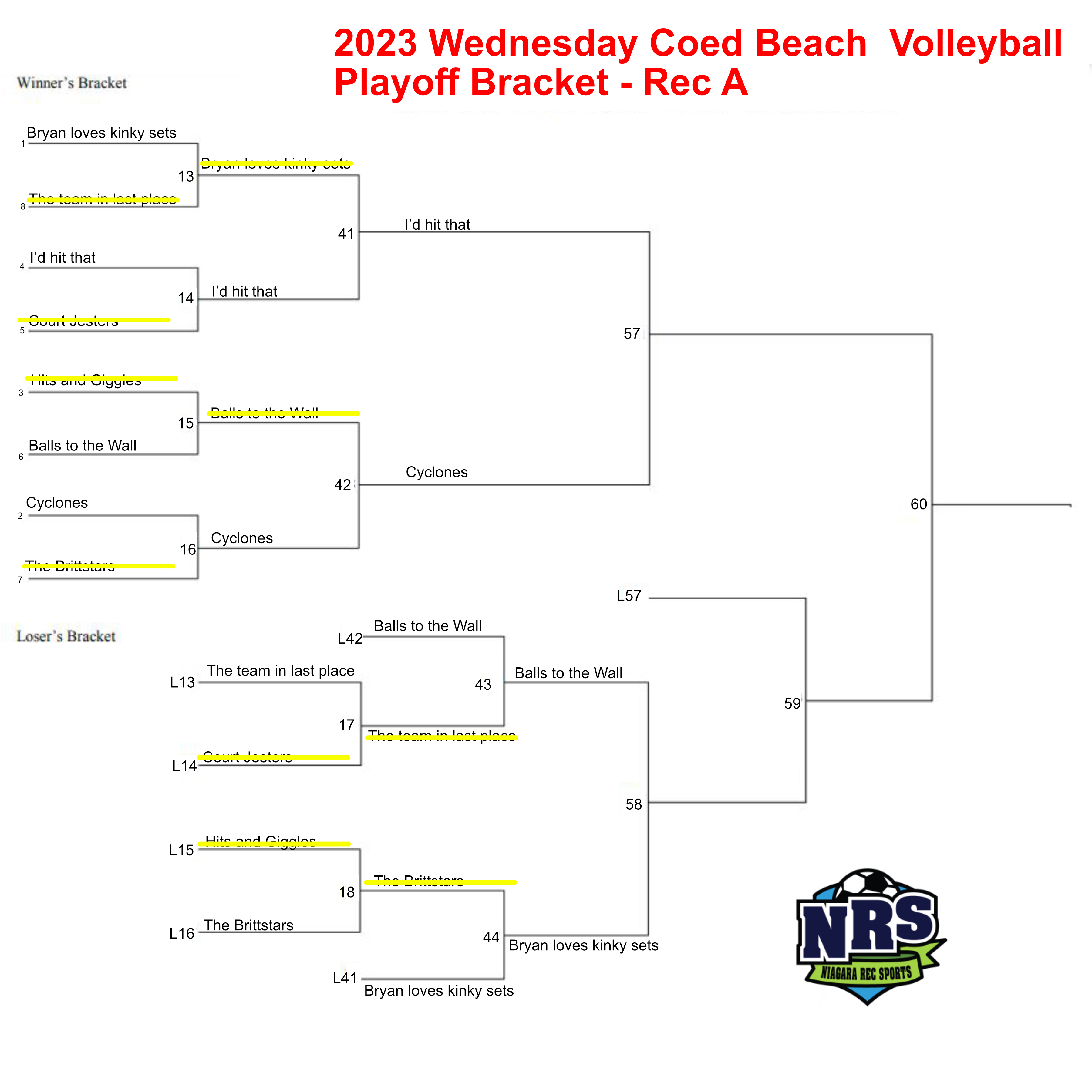 NRS Tuesday Coed Beach Volleyball Playoff Bracket – Intermediate Published September 7, 2023 at 3600 × 3600 in Wednesday Evening Beach Volleyball Playoff Schedule