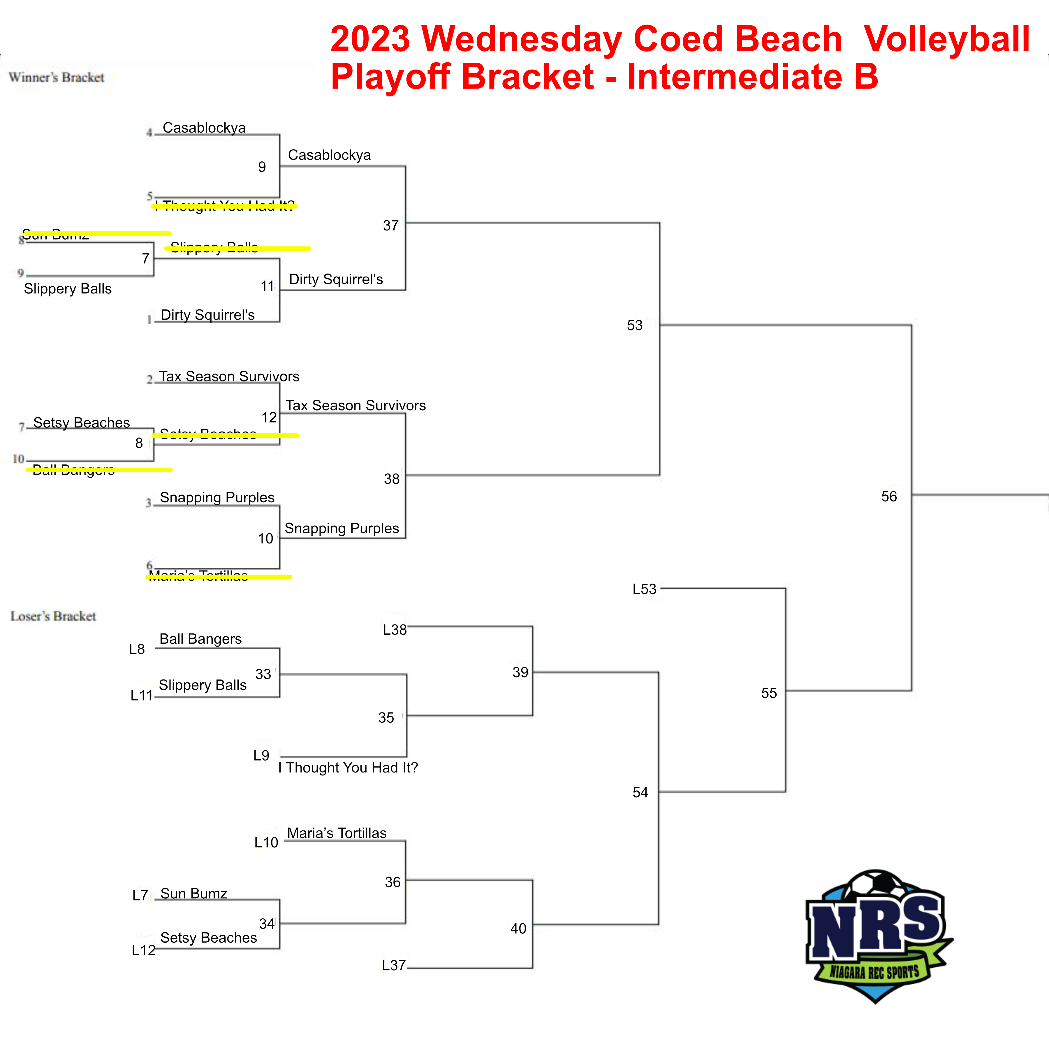 NRS Tuesday Coed Beach Volleyball Playoff Bracket – Rec A